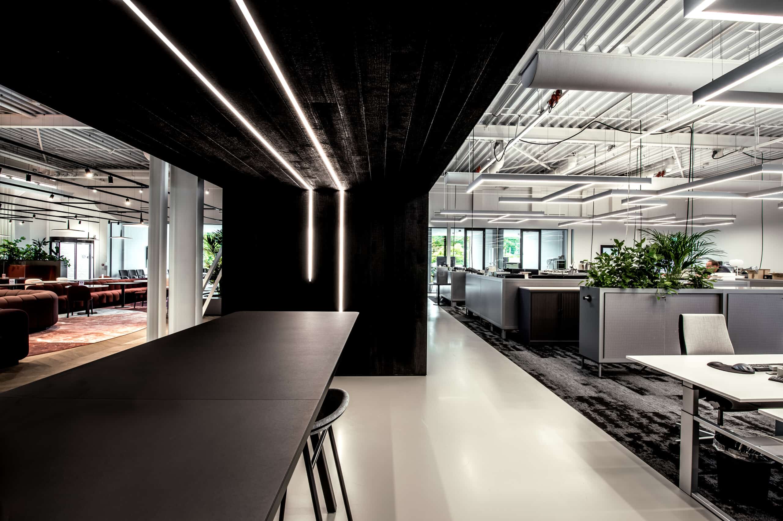 “Bij een interieurontwerp draait het om breedte, diepte en hoogte. Licht voegt daar nog iets aan toe. Het is een vierde dimensie, die de waarneming en de emotionele waarden van de ruimte ondersteunt.” Dit is de visie van Aleksandar Rublek, lighting designer sinds 1987. Voor technologiebedrijf Nedap ontwierp hij een bijzonder lichtplafond. Vanuit twee inspiratiebronnen – de inrichting van interieurarchitect Odette Ex en de printplaten die nauw met het werk van Nedap verbonden zijn – kwam hij tot een asymmetrisch profiel, dat contrasteert met de meubels op de vloer en de belijning op het plafond.